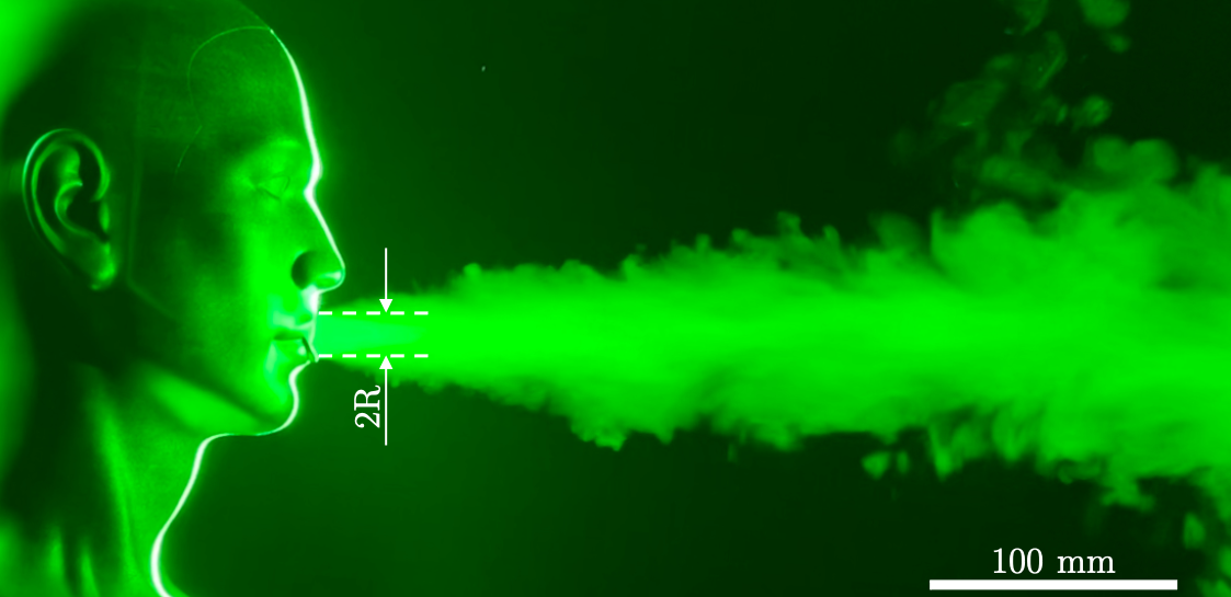 Visualisation of droplets size and distribution obtained via numerical simulations (Wang et al. , PNAS , 2021 )